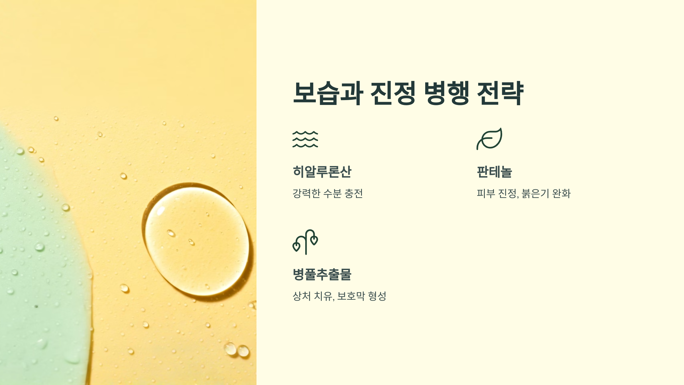 | 히알루론산 | 강력한 수분 충전, 장시간 보습 |