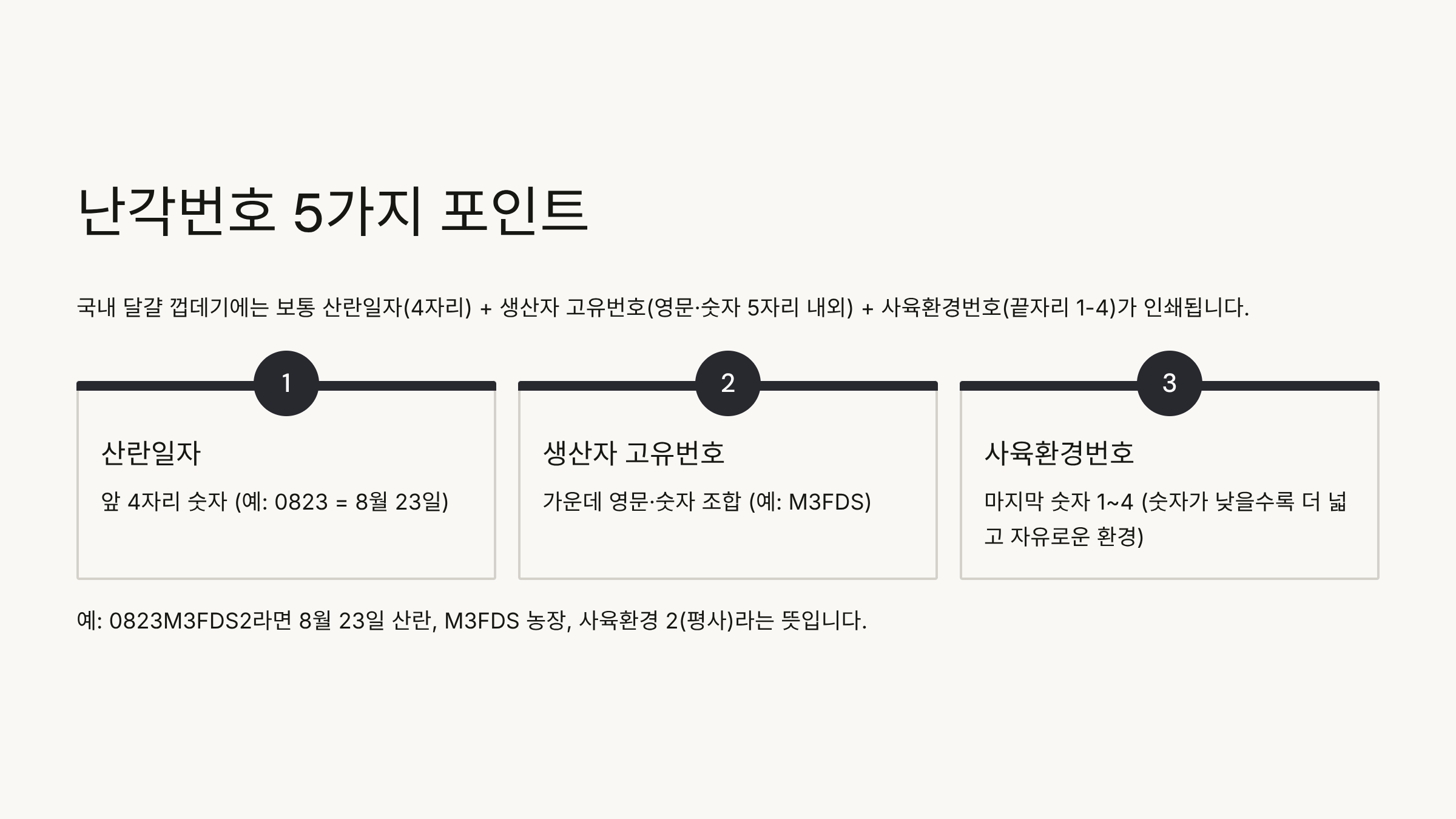 마트에서 계란 골라 들었다가 껍데기 숫자 보고 멈칫한 적 있죠? 그 ‘난각번호’만 읽을 줄 알아도 더 신선하고 나한테 맞는 계란을 고를 수 있어요.