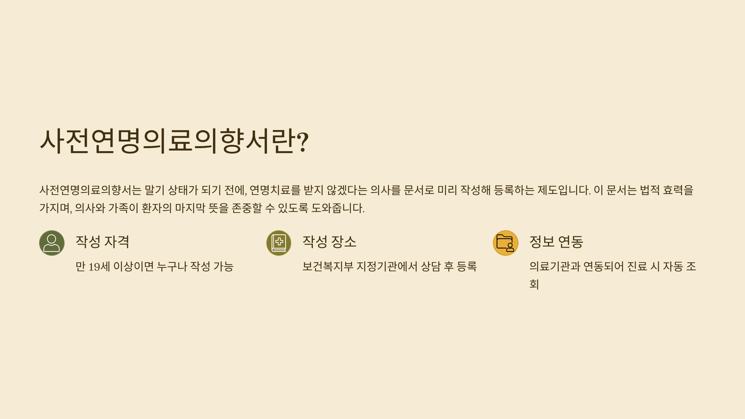 “삶의 마지막 순간, 나의 선택은 내가 결정하고 싶습니다. 연명치료에 대한 사전 준비는 지금 시작해야 합니다.”