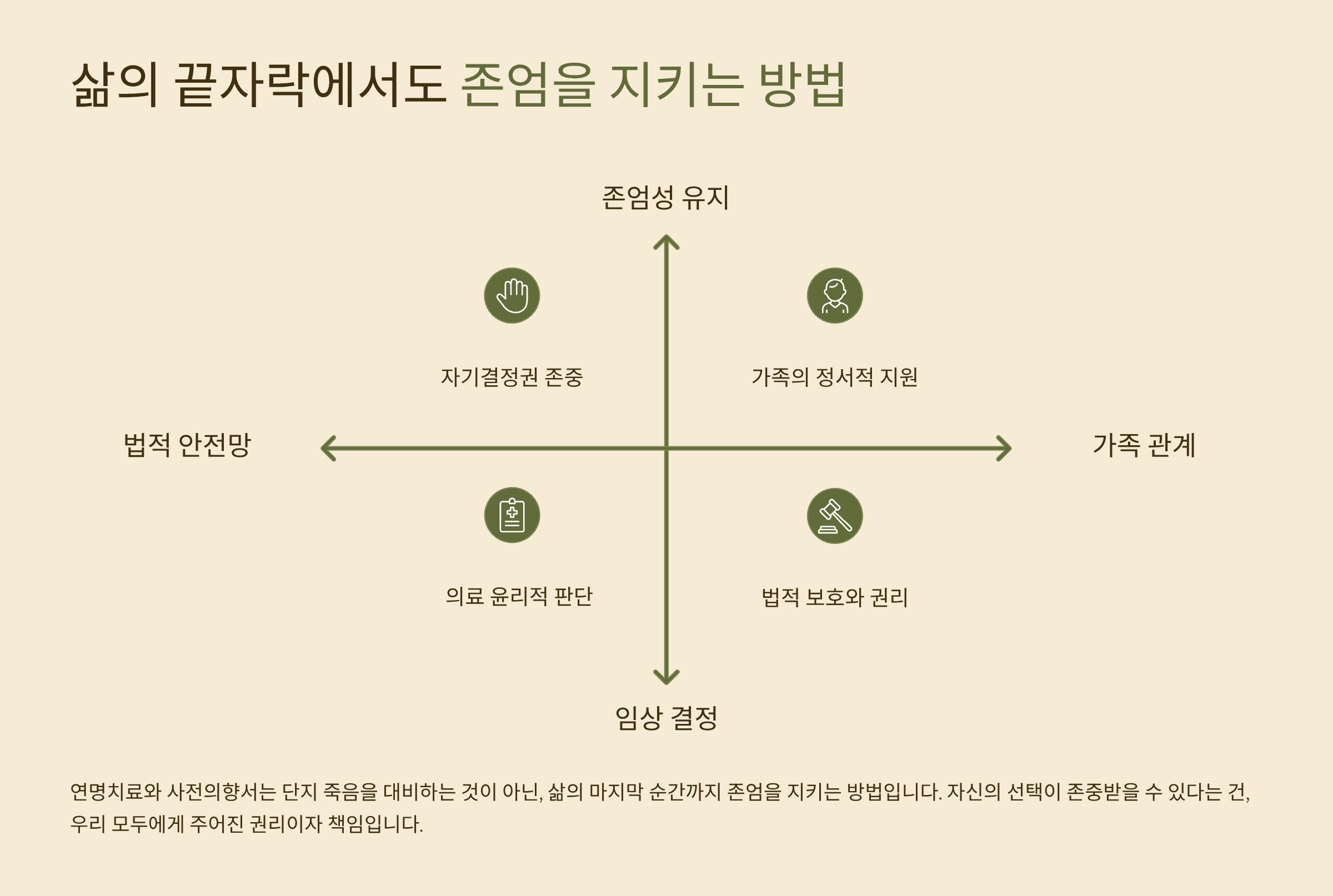 - 오해: 존엄사는 가족에게 무책임하다 → 진실: 사전 합의와 준비로 가족 부담 경감