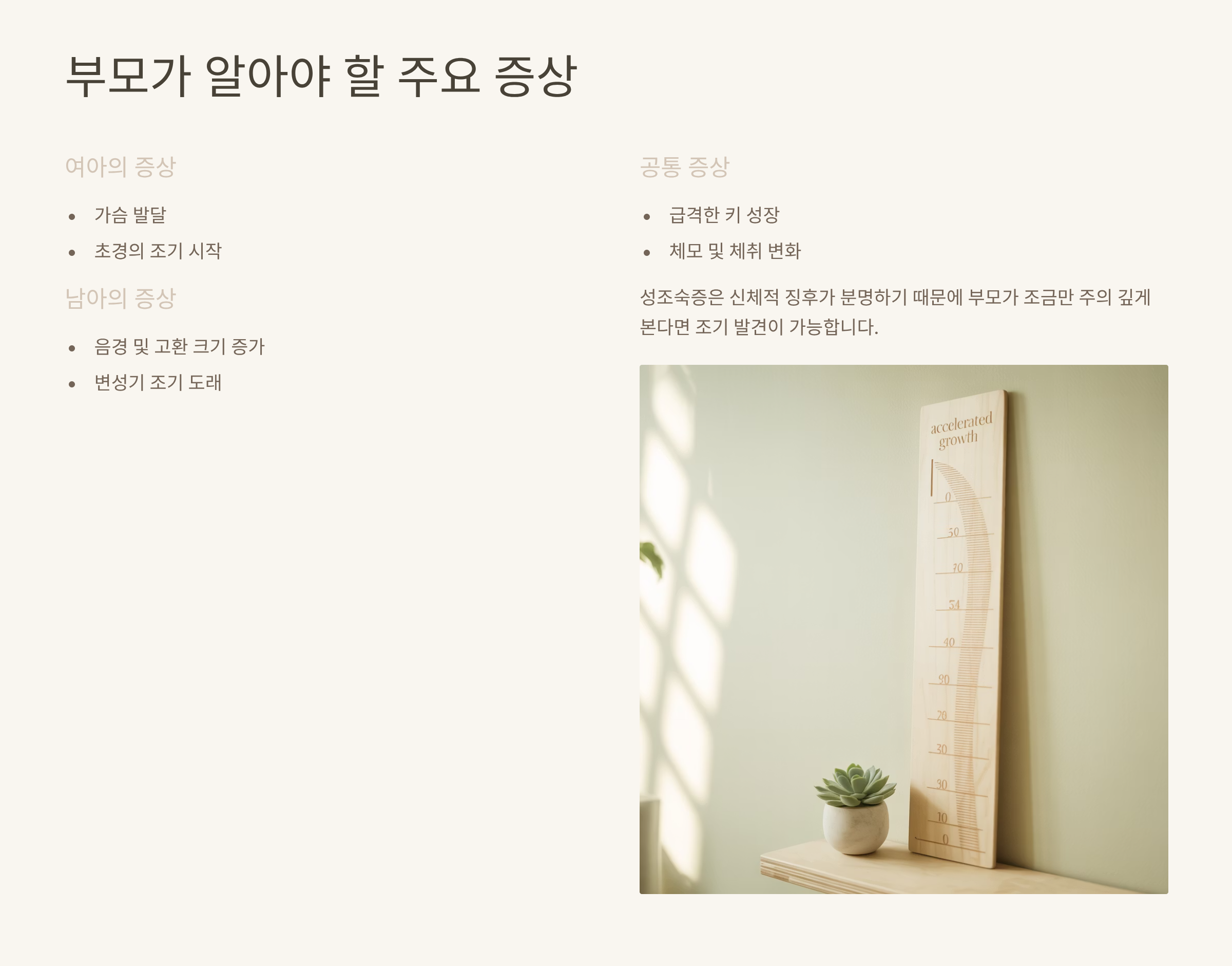 “아이의 성장 속도가 또래보다 빠르다면? 성조숙증은 호르몬과 건강에 숨어 있는 중요한 메시지일 수 있습니다.”