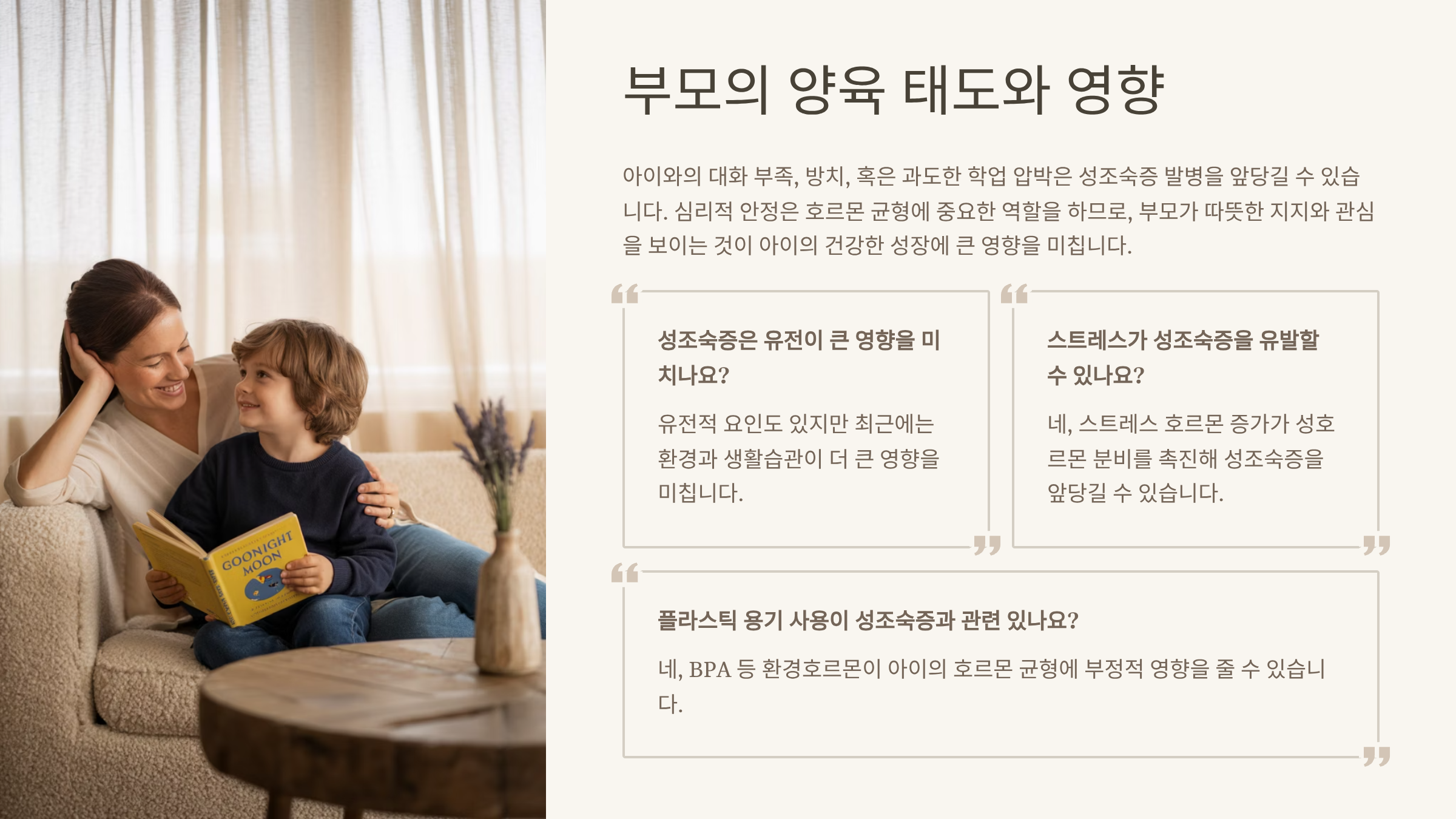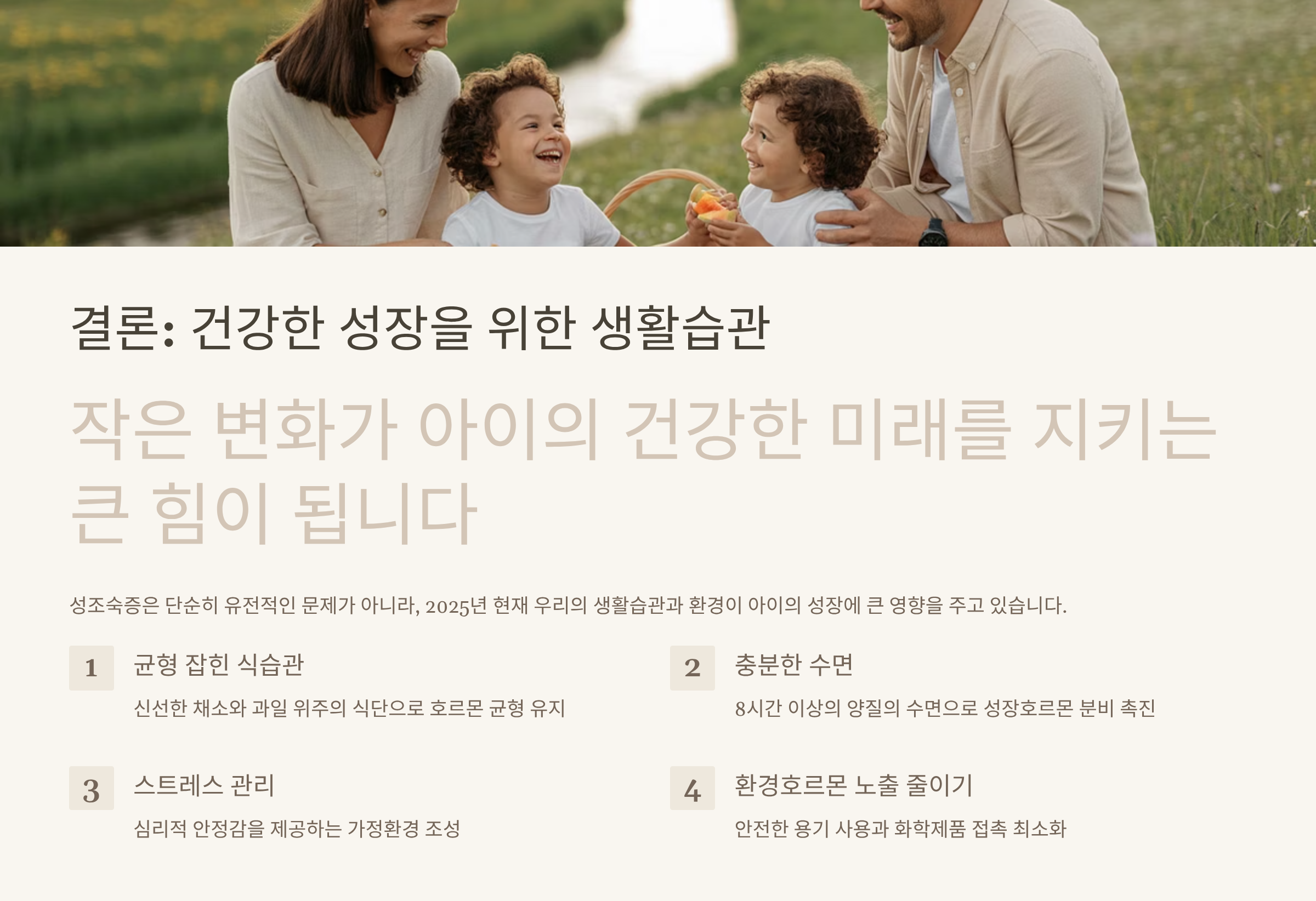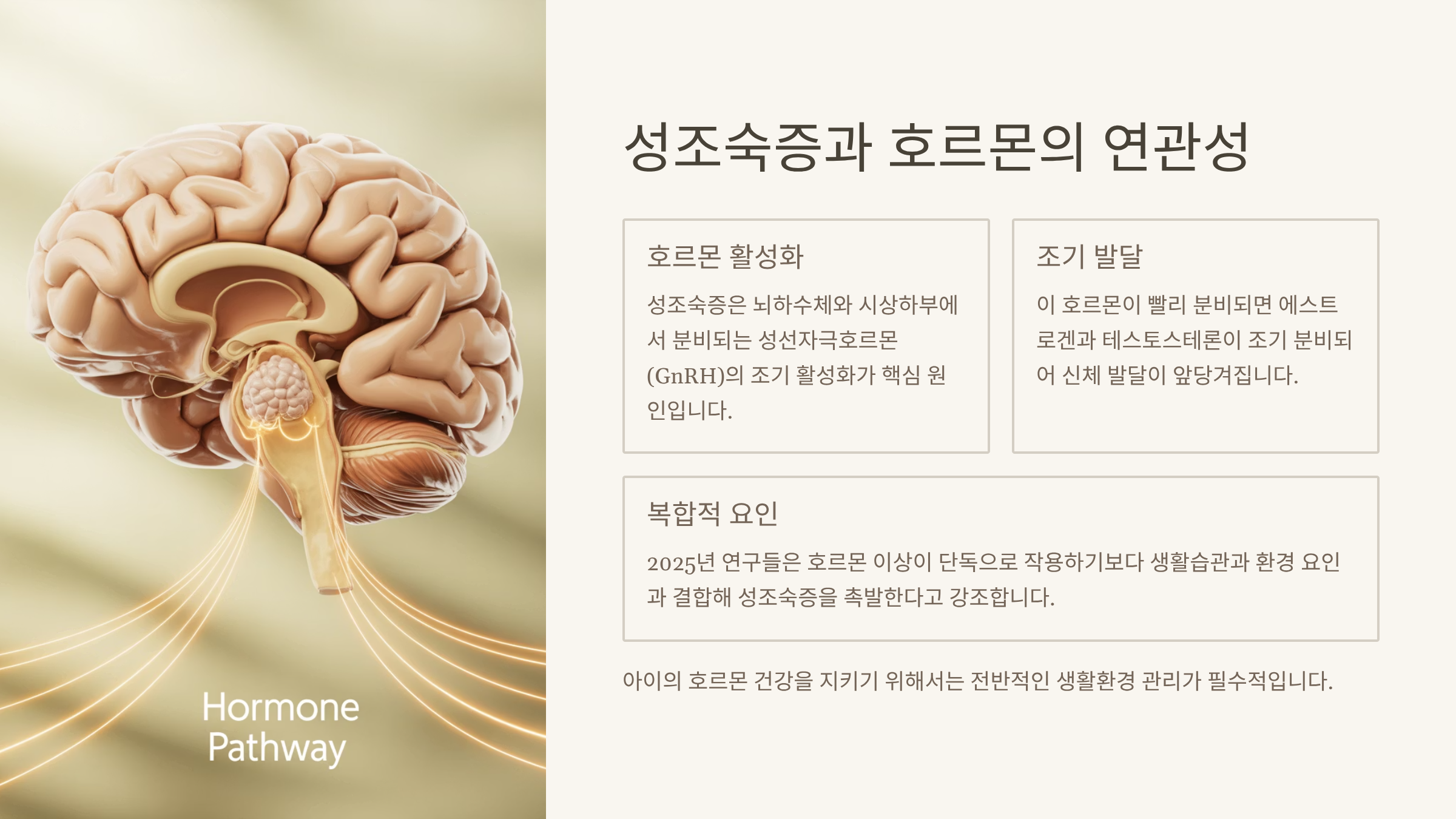 “2025년, 성조숙증 발병 원인 중 절반 이상이 생활습관과 환경 요인이라는 사실 알고 계셨나요?”