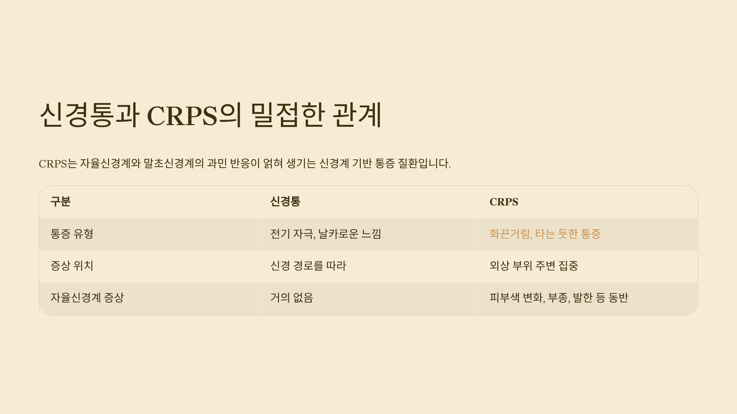 | 구분 | 신경통 | CRPS |