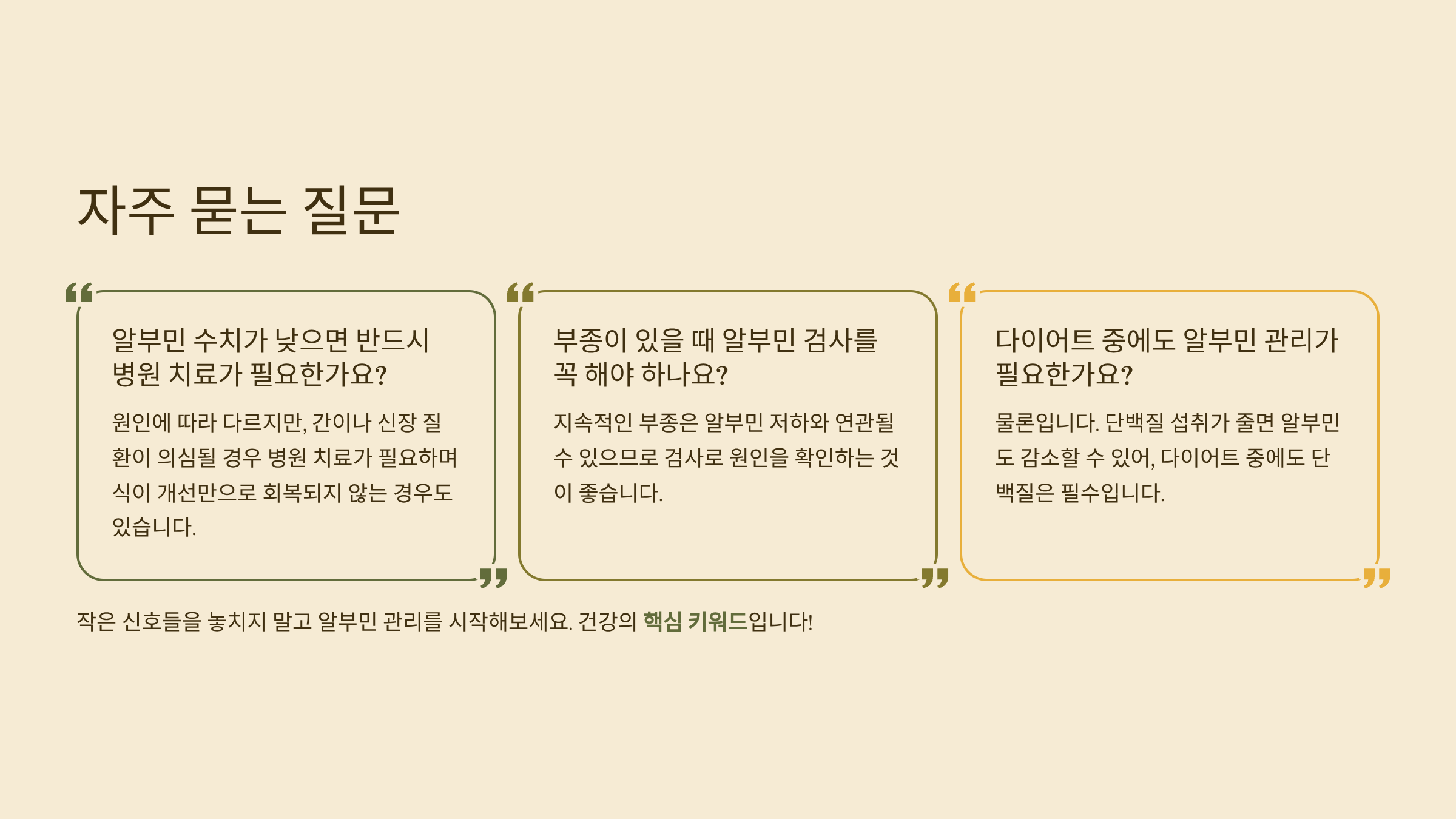 알부민, 그저 숫자로만 생각했었는데 이제는 건강의 핵심 키워드라는 걸 확실히 느꼈어요. 저도 처음에는 몸이 자주 붓는 이유를 몰라서 답답했는데, 알부민 수치가 낮다는 걸 알게 된 후 식단과 생활습관을 조금씩 바꾸면서 점차 회복되는 걸 느낄 수 있었어요. 여러분도 지금 당장은 괜찮아 보여도, 작은 신호들을 놓치지 말고 알부민 관리 시작해보세요. 궁금한 점이나 경험 있으신 분들은 댓글로 자유롭게 이야기 나눠주세요!