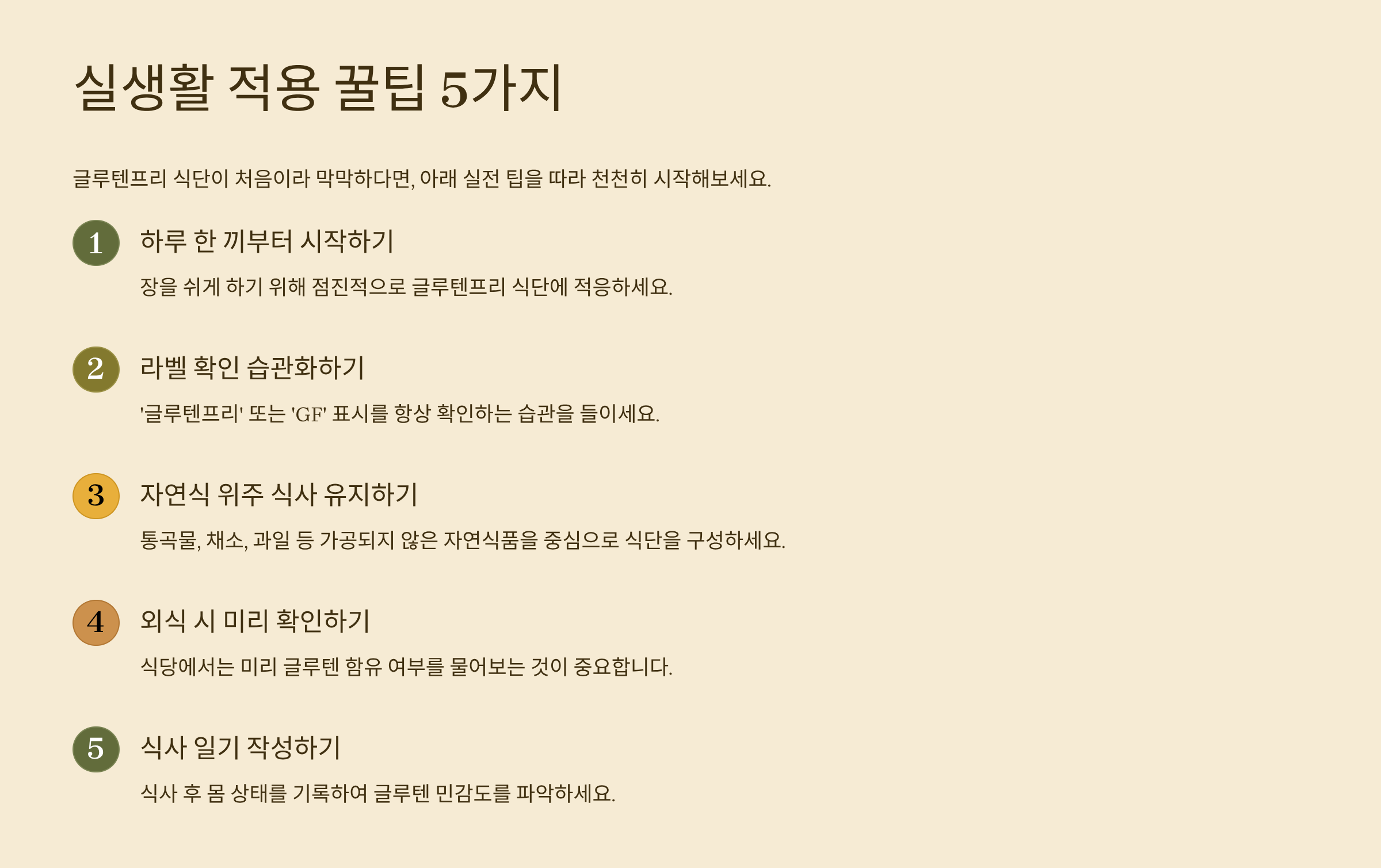글루텐프리 식단이 처음이라 막막하다면, 아래 실전 팁을 따라 천천히 시작해보세요.