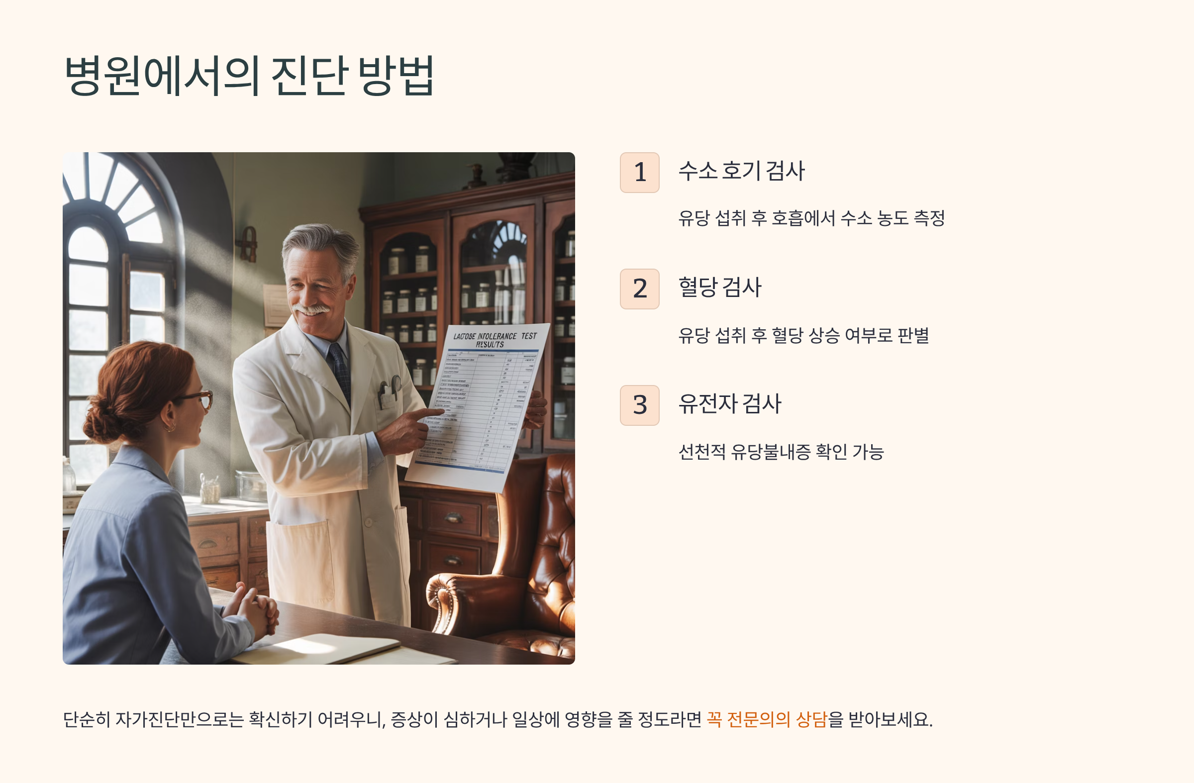 - 유전자 검사: 선천적 유당불내증 확인 가능
