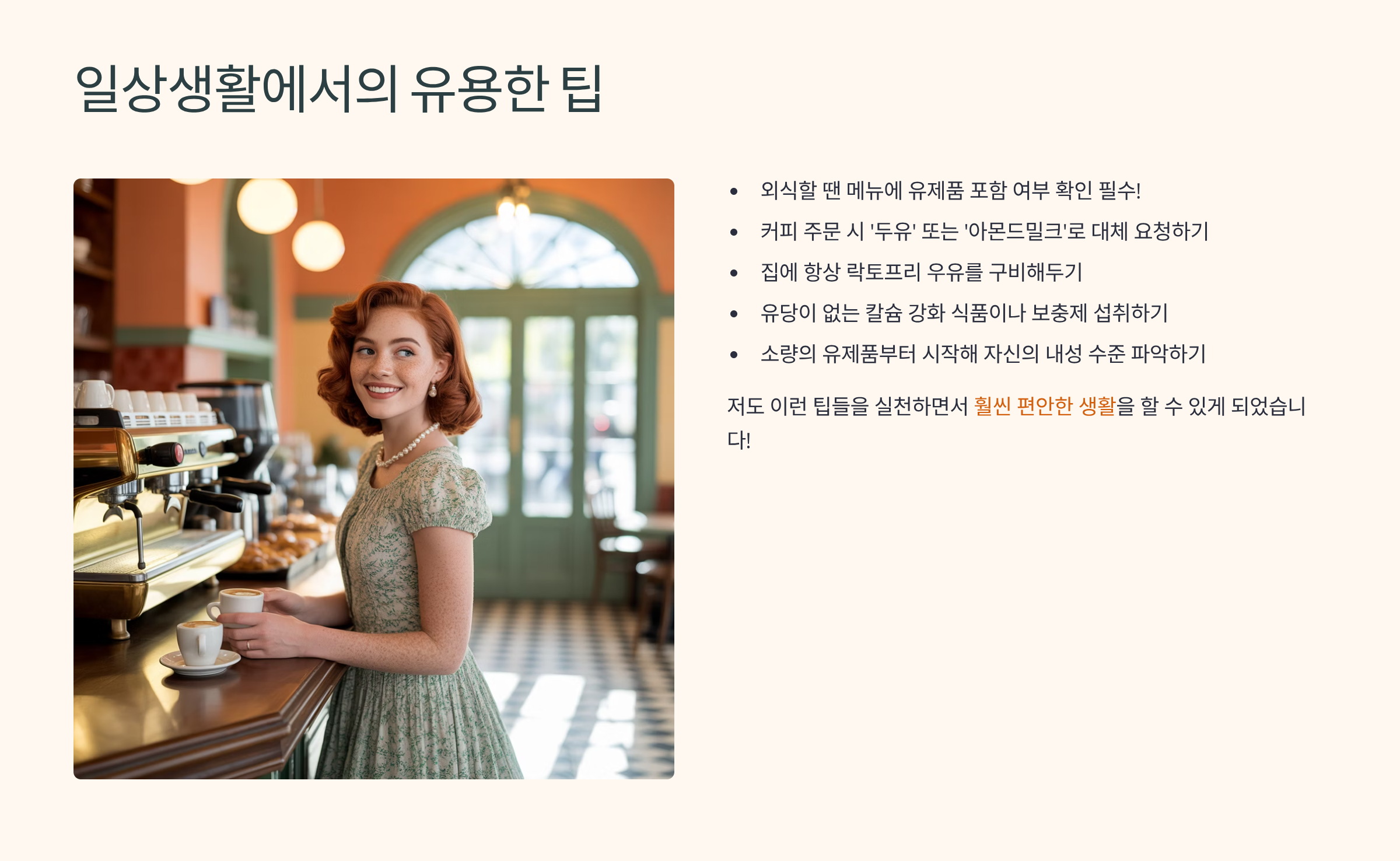 저도 유당불내증을 겪고 나서 많은 시행착오를 겪었는데요, 일상생활에서 다음 팁들을 실천하면서 훨씬 편해졌어요. 누구나 따라 할 수 있는 아주 현실적인 방법들입니다!