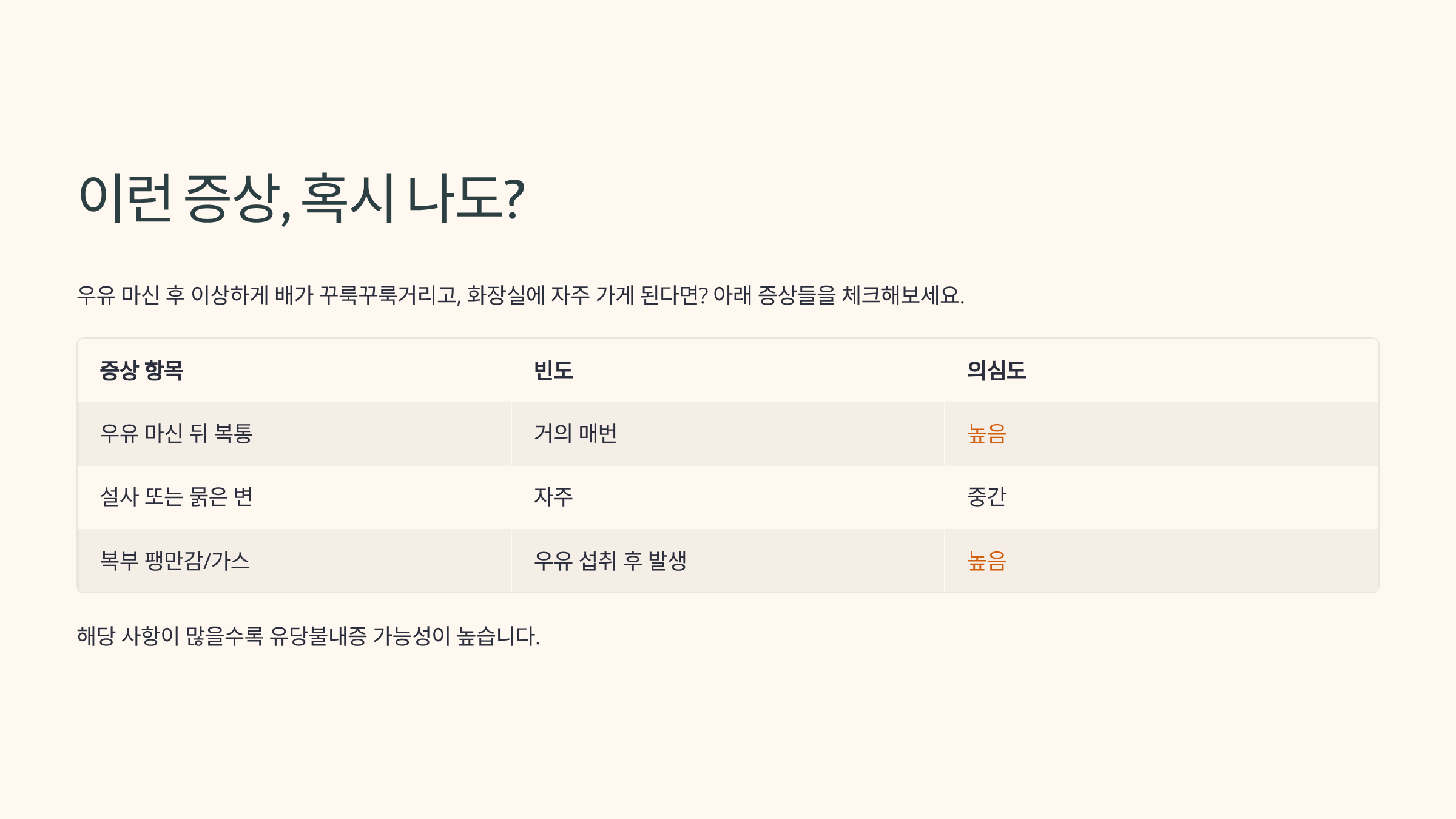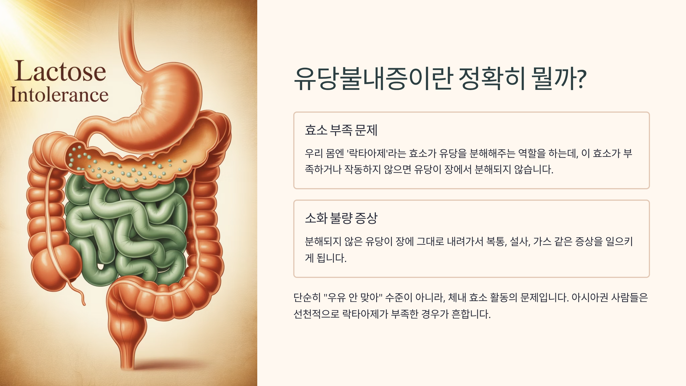 "우유 마시고 배가 아팠던 경험, 있으신가요?" 유당불내증은 단순한 소화 문제를 넘어 건강 전체와 연결된 이야기랍니다.