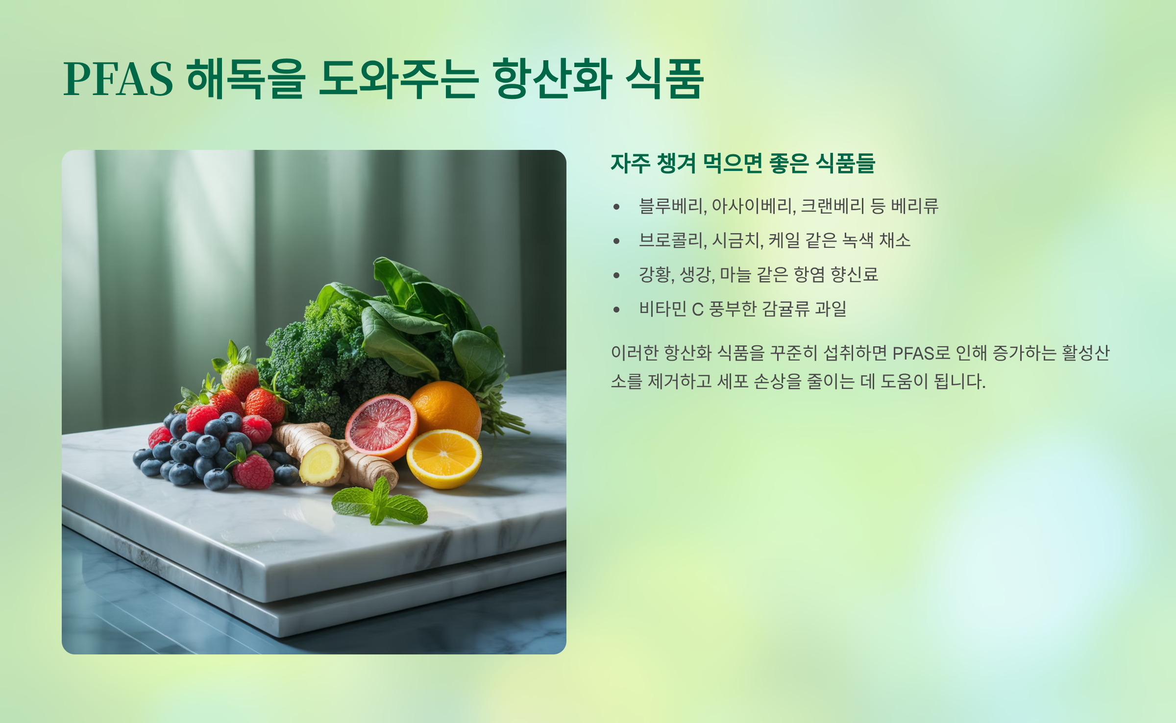 PFAS 해독을 도와주는 항산화 식품 리스트