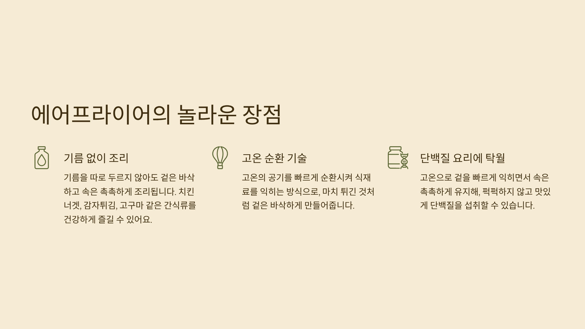 기름 없이 바삭하게! 그런데 그게 끝이 아니에요. 에어프라이어 하나로 다이어트는 물론 심장까지 챙길 수 있다는 사실, 알고 계셨나요?