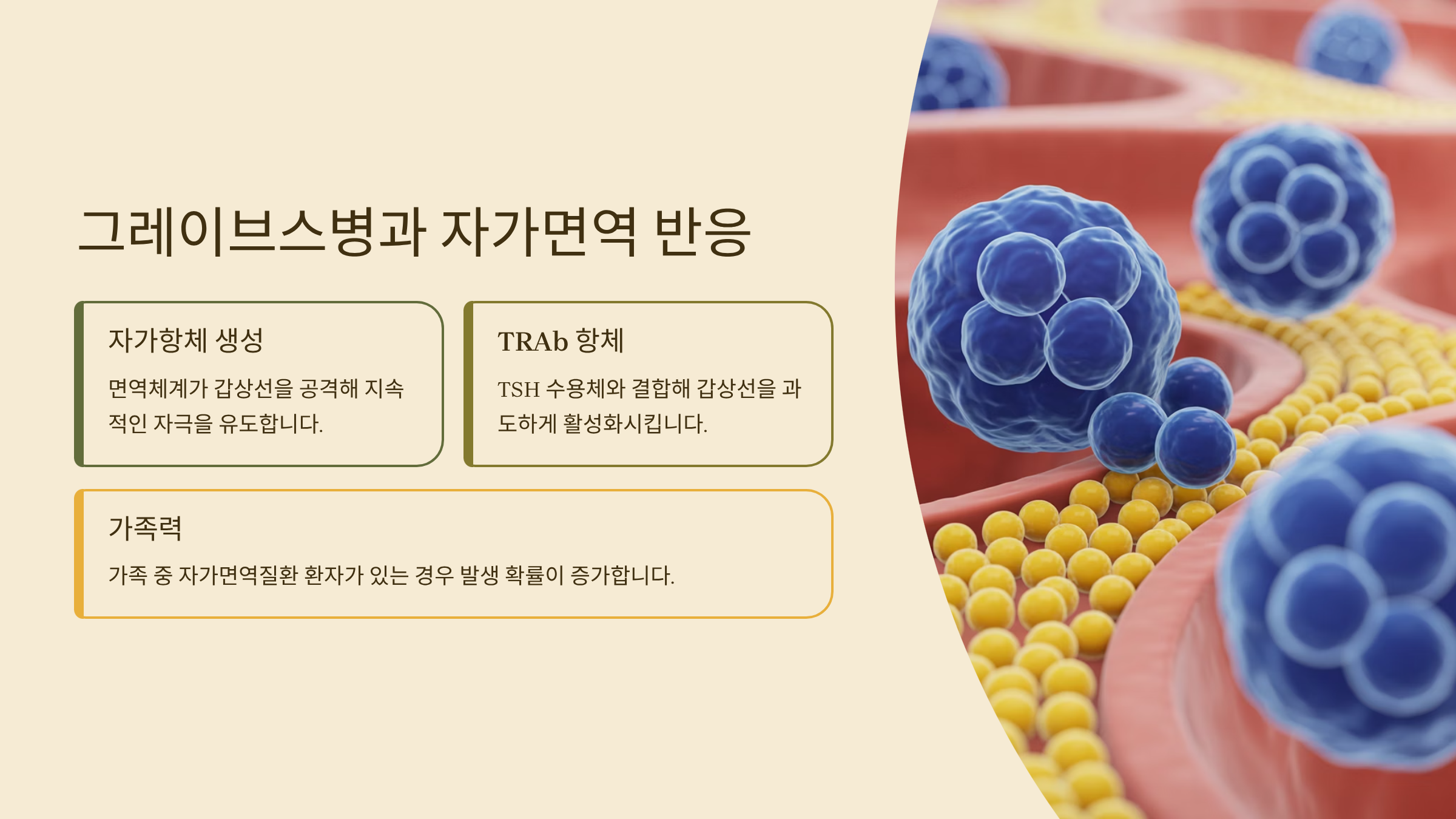 | TRAb 항체 | TSH 수용체와 결합해 갑상선을 과도하게 활성화 |