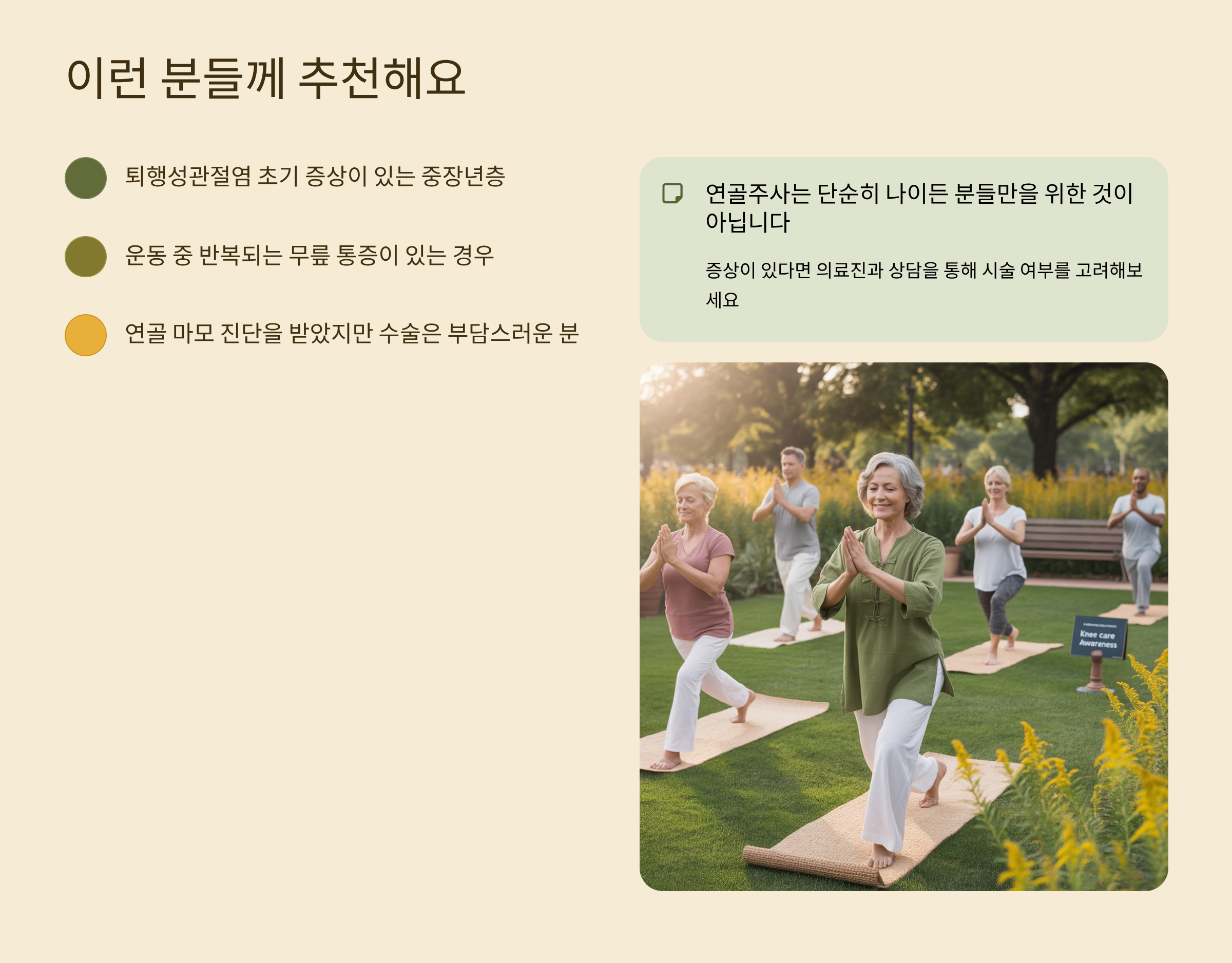 - 연골 마모 진단을 받았지만 수술은 부담스러운 분
