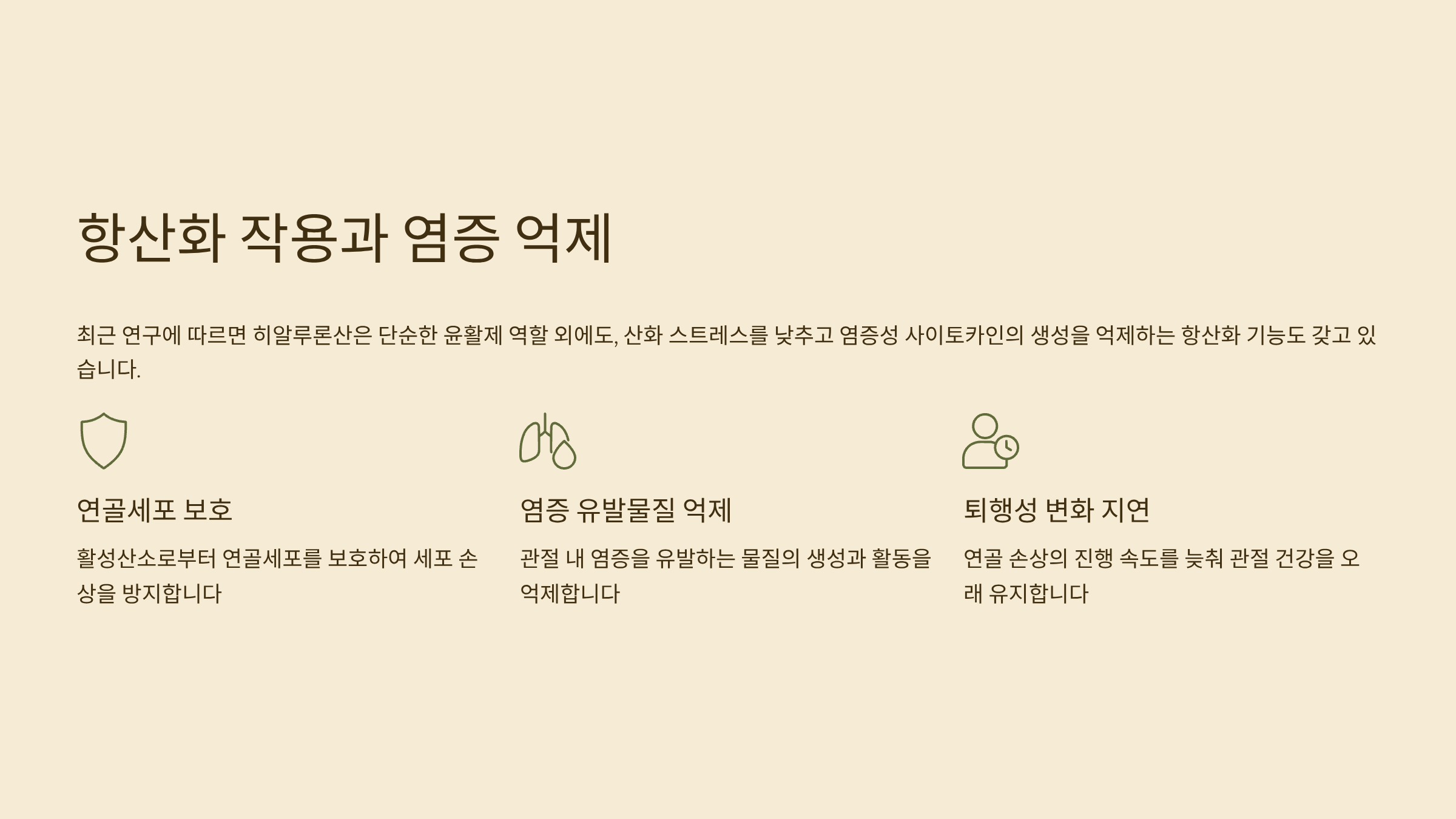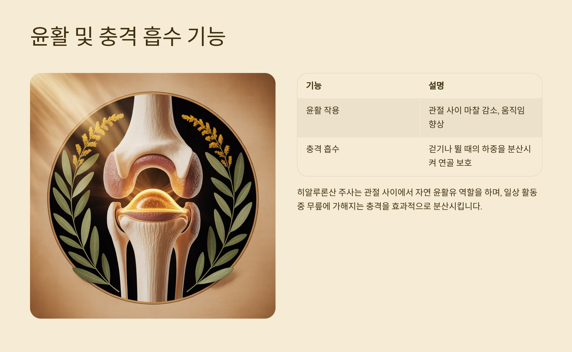 | 윤활 작용 | 관절 사이 마찰 감소, 움직임 향상 |