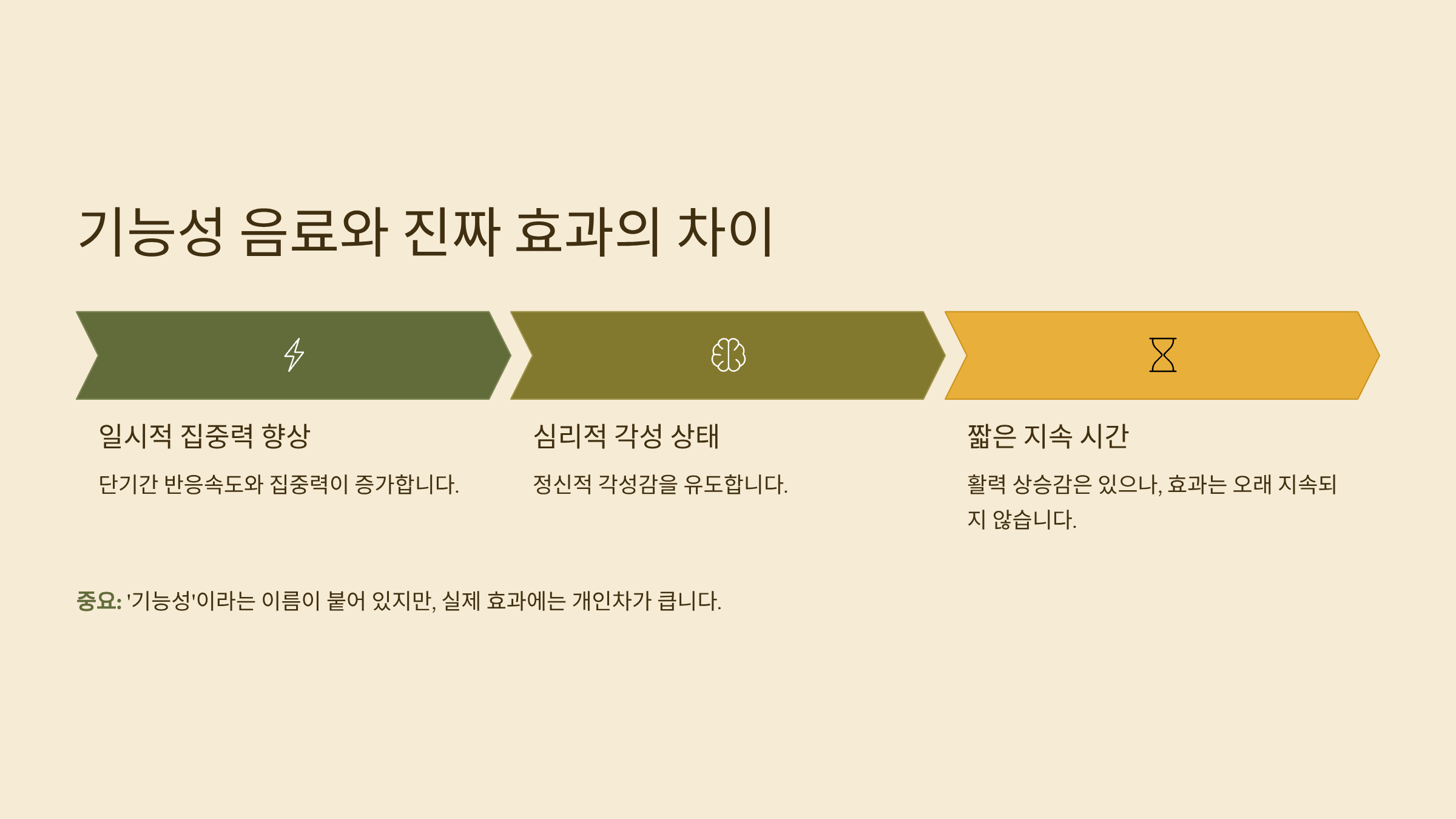 에너지드링크는 ‘기능성’이라는 이름이 붙어 있지만, 실제 효과에는 개인차가 커요. 기대할 수 있는 일반적인 효과는 아래와 같습니다.
