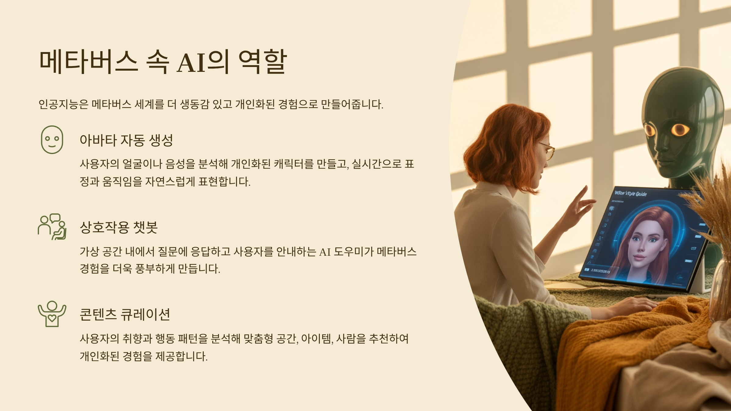 안녕하세요 여러분! 저는 최근 메타버스 부동산에 관심을 가지면서 새로운 세계에 눈을 뜨게 되었어요. 그냥 게임처럼 여겼던 가상 공간에서 실제 돈이 오가고, AI가 아바타를 대신해 일을 하고 있다는 걸 알게 됐죠. ‘디지털 세상에도 진짜 자산이 존재할까?’ 하는 궁금증으로 시작된 제 호기심은 어느새 블록체인, NFT, AI 아바타까지 공부하게 만들었답니다. 오늘은 저처럼 초보자분들도 이해할 수 있도록, 메타버스 속에서 AI와 디지털 자산이 어떻게 작동하고, 어떤 기회를 줄 수 있는지를 7가지 포인트로 정리해드릴게요.
