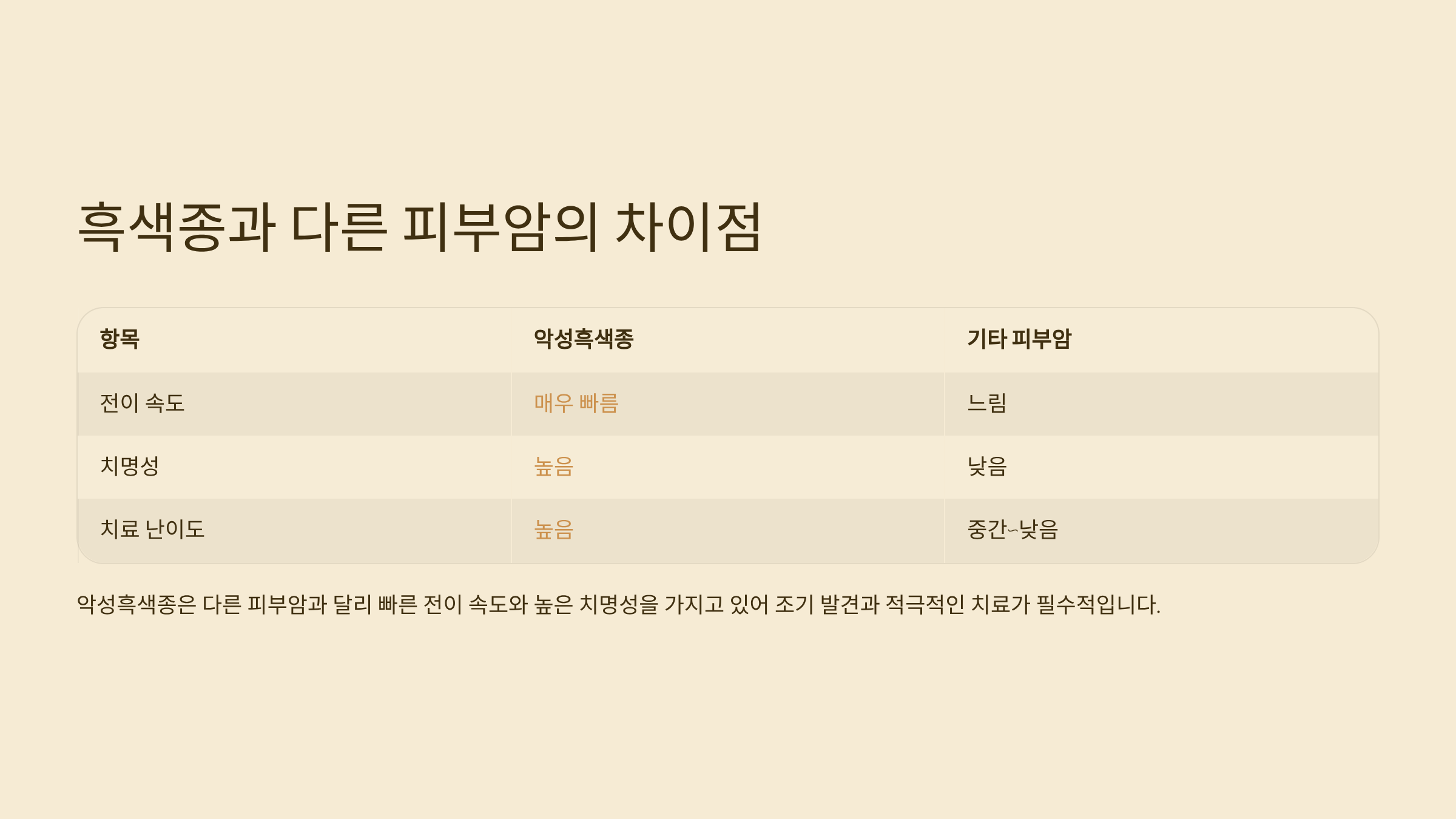 | 항목 | 악성흑색종 | 기타 피부암 |