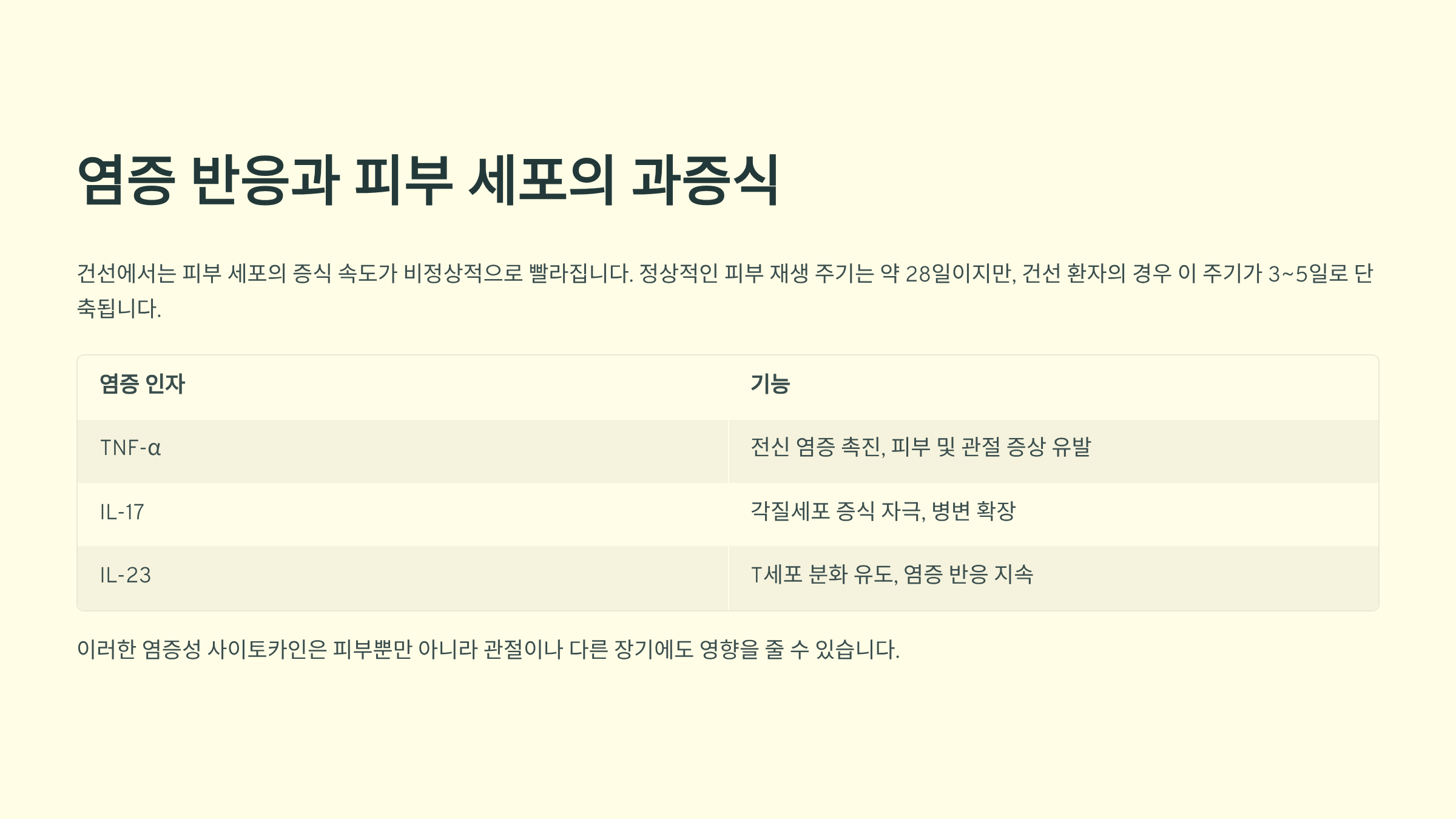 2. 염증 반응과 피부 세포의 과증식