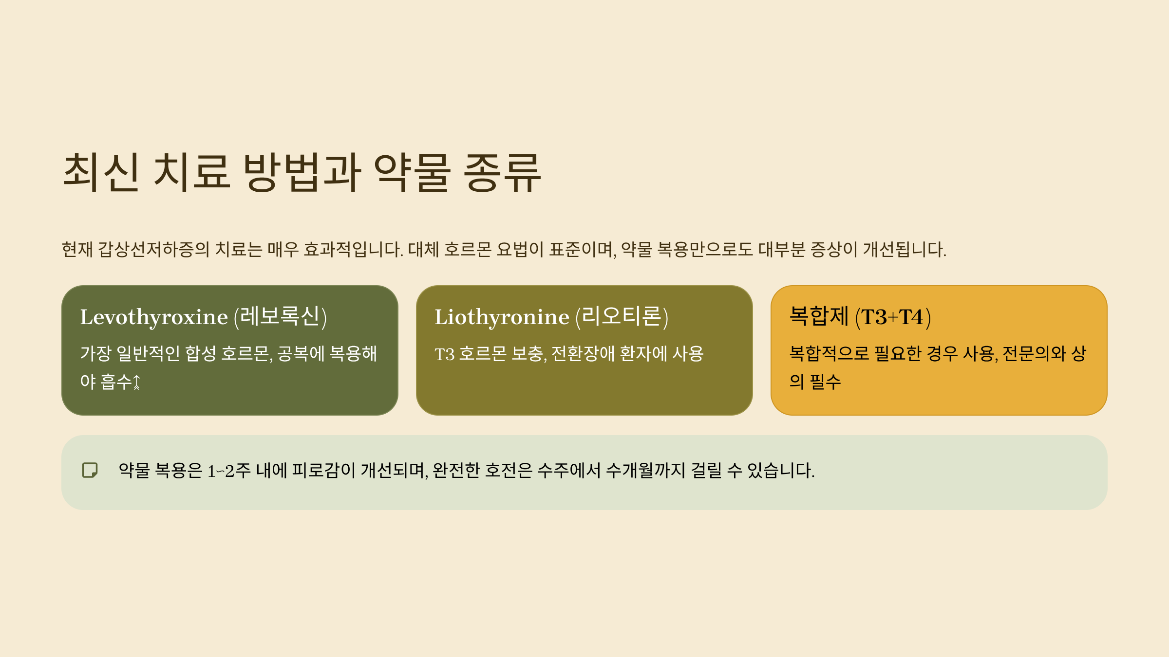 현재 갑상선저하증의 치료는 매우 효과적이에요. 대체 호르몬 요법이 표준이며, 약물 복용만으로도 대부분 증상이 개선됩니다. 다음은 주요 약물과 특징이에요.