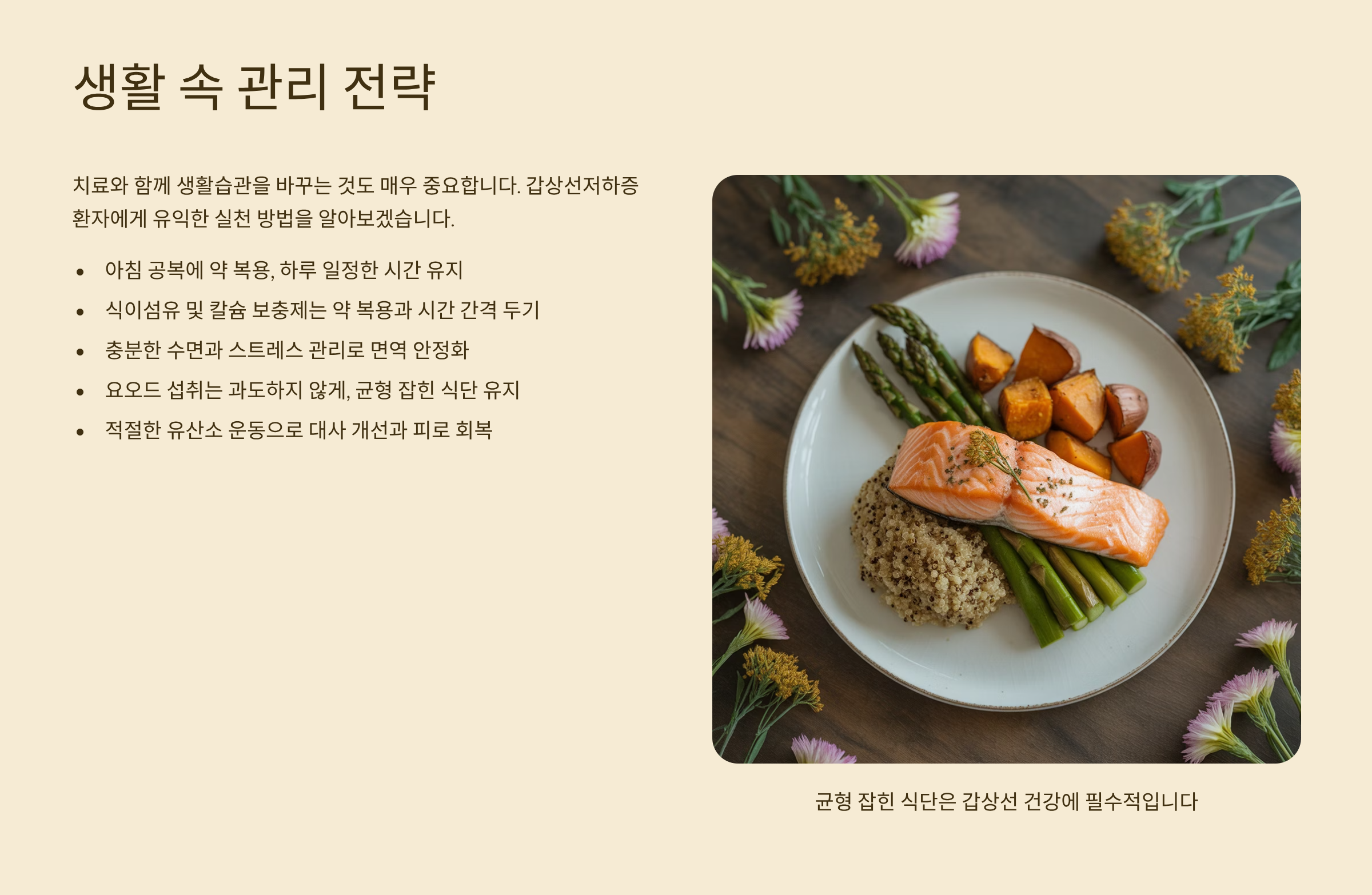 - 요오드 섭취는 과도하지 않게, 균형 잡힌 식단 유지